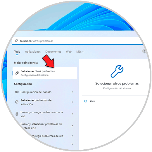 Para usar esta herramienta en el buscador de Inicio ingresamos "solucionar" y damos clic en "Solucionar otros problemas":