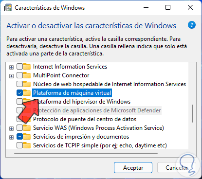Ahora activamos la casilla "Subsistema de Windows para Linux":