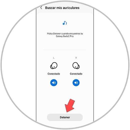 En la pantalla vas a poder ver cuales auriculares están sonando (derecho e izquierdo). Cuando los hayas encontrado pulsa en “Detener” en la pantalla del Smartphone.
