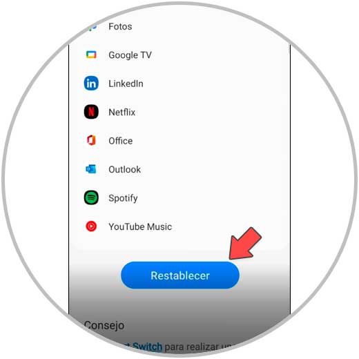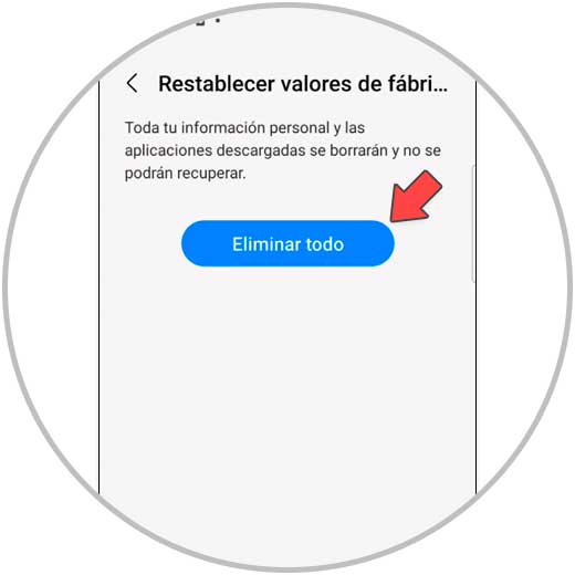 Aparecerá una pantalla que te indicará todo lo que se va a eliminar. Pulsa en el botón azul de “Restablecer” para continuar.