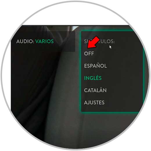 Si pulsamos en "Subtítulos" veremos que podemos elegir un idioma para activarlos