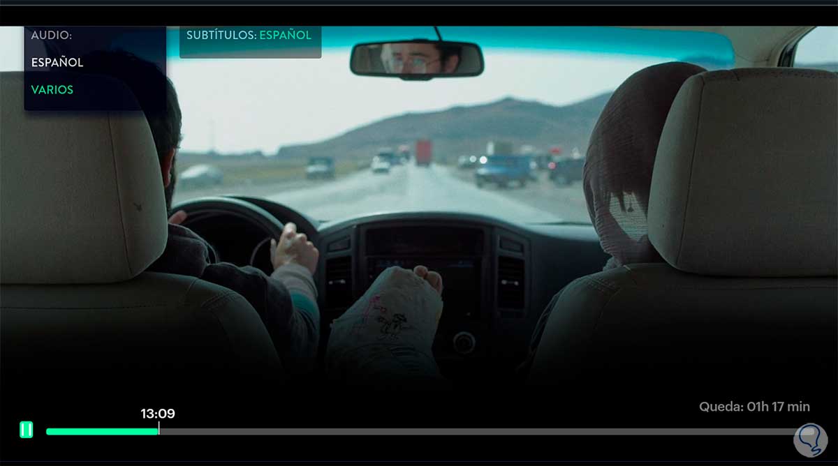 En la parte superior veremos las opciones de "Audio" y "Subtítulos" que aparecerán cuando pausemos el título