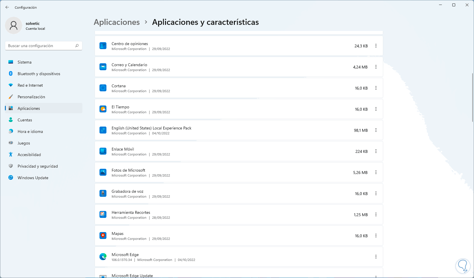En primer lugar la vamos a desinstalar, vamos a "Inicio - Configuración - Aplicaciones - Aplicaciones y características":