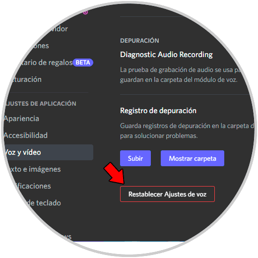 En "Voz y video" damos clic en "Restablecer Ajustes de voz":