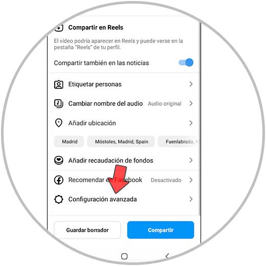 Ahora, en la última pantalla, antes de “Compartir”, selecciona “Configuración avanzada”.