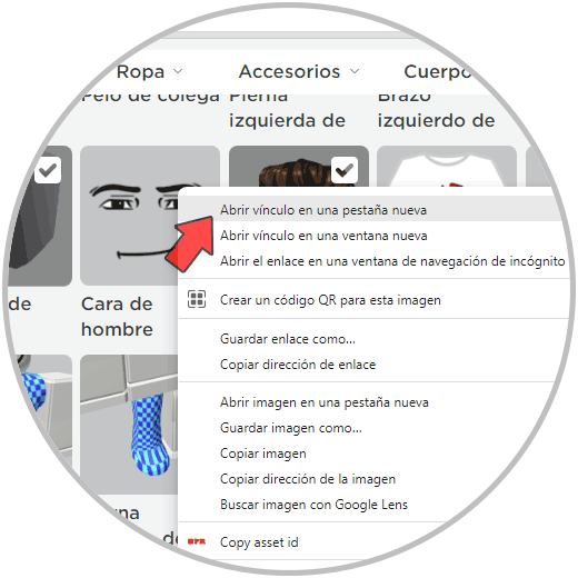 Damos clic derecho sobre las opciones de cabello y seleccionamos la opción "Abrir vínculo en una pestaña nueva":