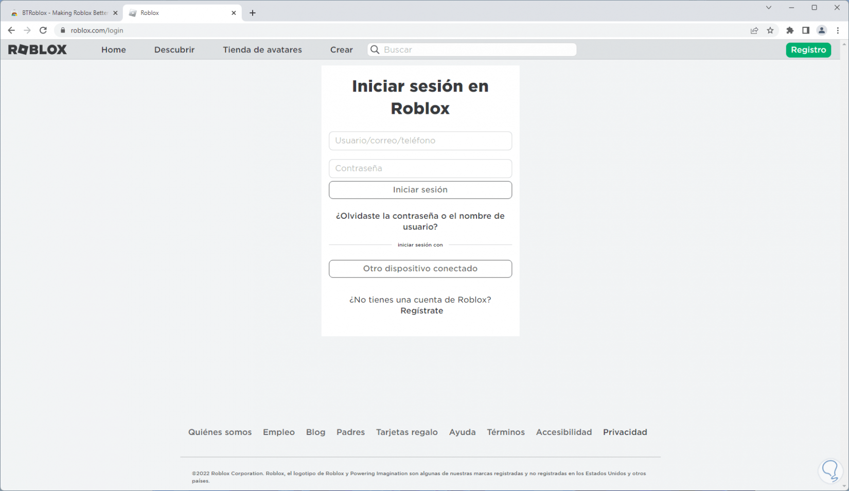 Después de esto iniciamos sesión en Roblox en el siguiente enlace: