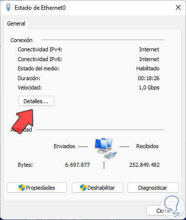 Al dar clic allí verás el DNS en Windows 11 o Windows 10: