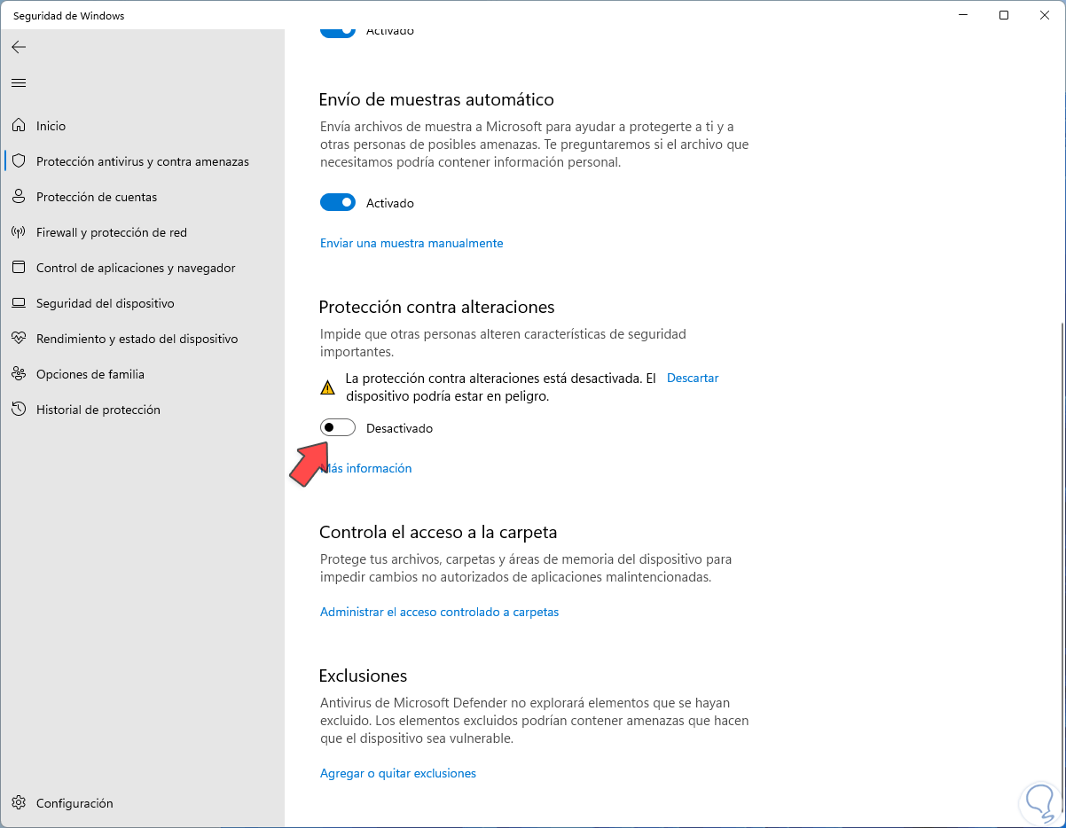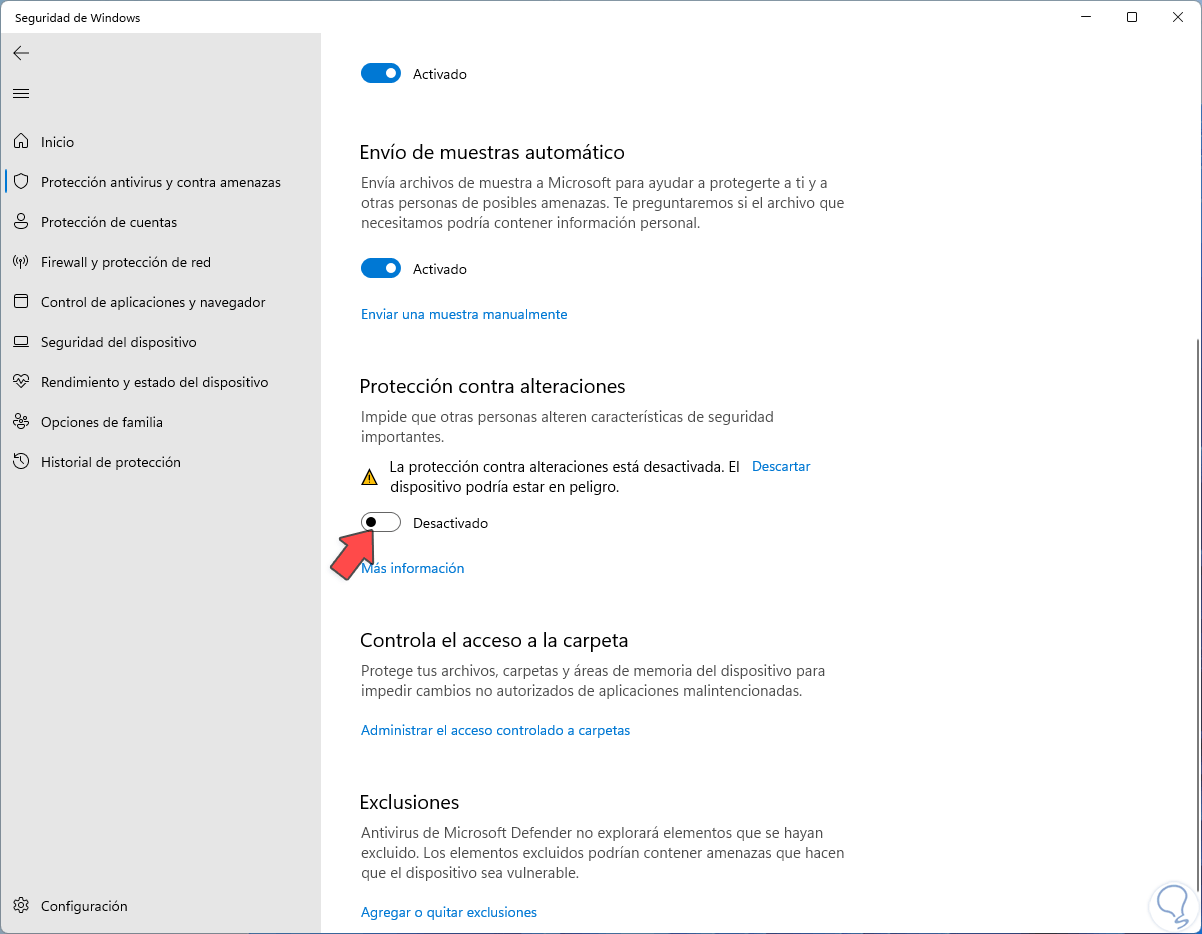 1 Desactivar Protección contra Manipulaciones Windows 11