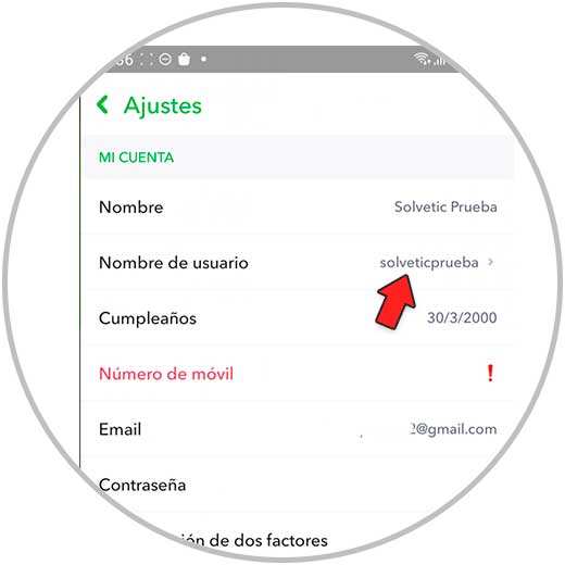Toca "Nombre de usuario" en la sección "Mi cuenta".