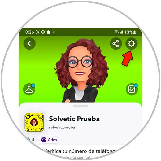 Toca el icono de la rueda dentada en Mi perfil para abrir Ajustes.