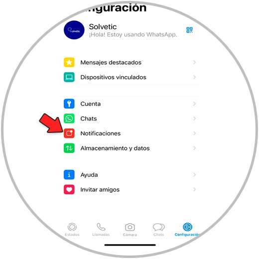 Una vez dentro de la app de WhatsApp, tienes que pulsar dentro de la configuración en el apartado de "Notificaciones"