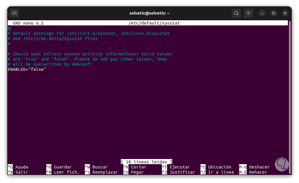 Vamos a habilitar Sar para recopilar datos, esto se habilita en el archivo /etc/default/sysstat, para ello abrimos el archivo de configuración con el editor deseado: