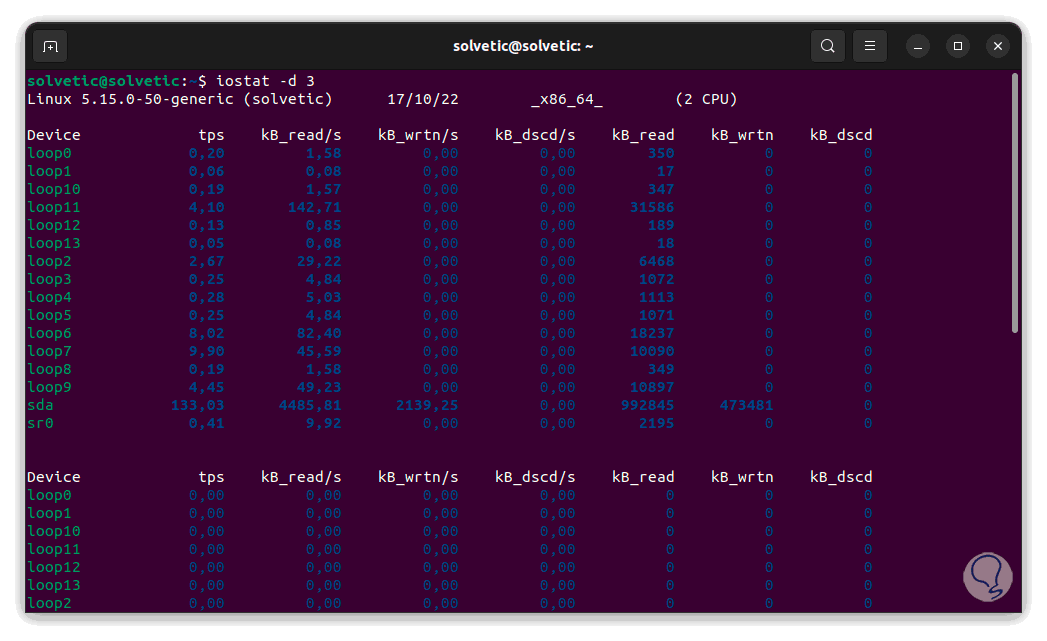 - -d: crea un informe de actividad para cada dispositivo de bloque en Linux