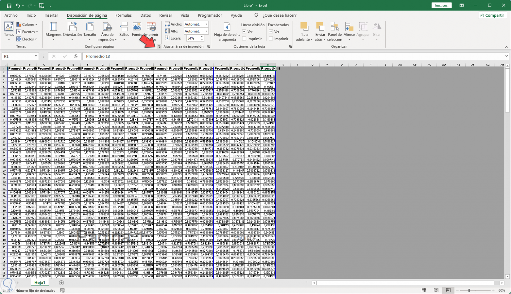 Vamos de nuevo a la hoja y en el menú "Disposición de página" damos clic en el icono "Configurar página" ubicado en el extremo inferior: