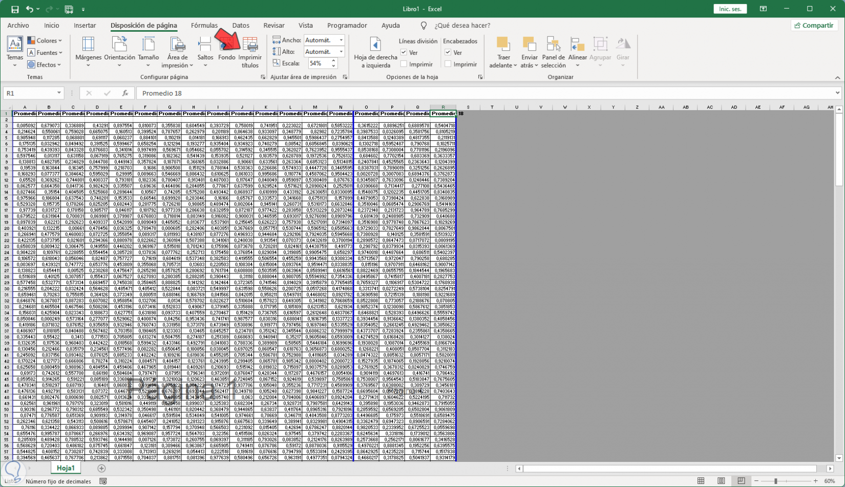 Volvemos a la hoja de cálculo y en el menú "Disposición de página" da clic "Imprimir títulos":