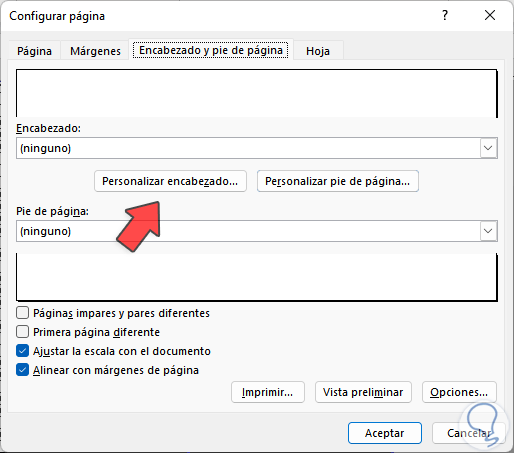En la ventana desplegada vamos a "Encabezado y pie de página":