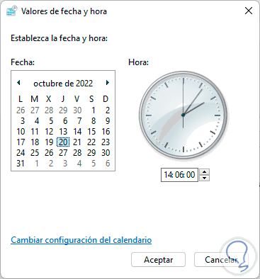 En la sección "Fecha y hora" damos clic en "Cambiar fecha y hora" y ahora veremos lo siguiente: