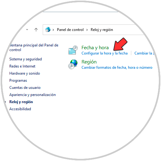 Abrimos el Panel de control y de nuevo vamos a "Reloj y región - Configurar la hora y la fecha":