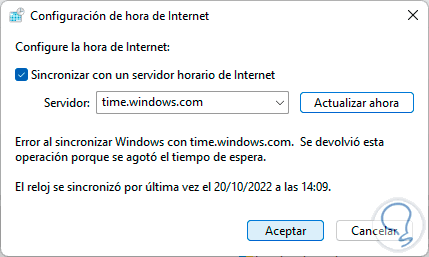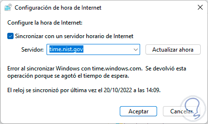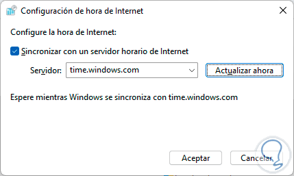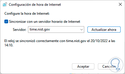 Activamos la casilla "Sincronizar con un servidor horario de Internet" si no lo está y damos clic en "Actualizar ahora":