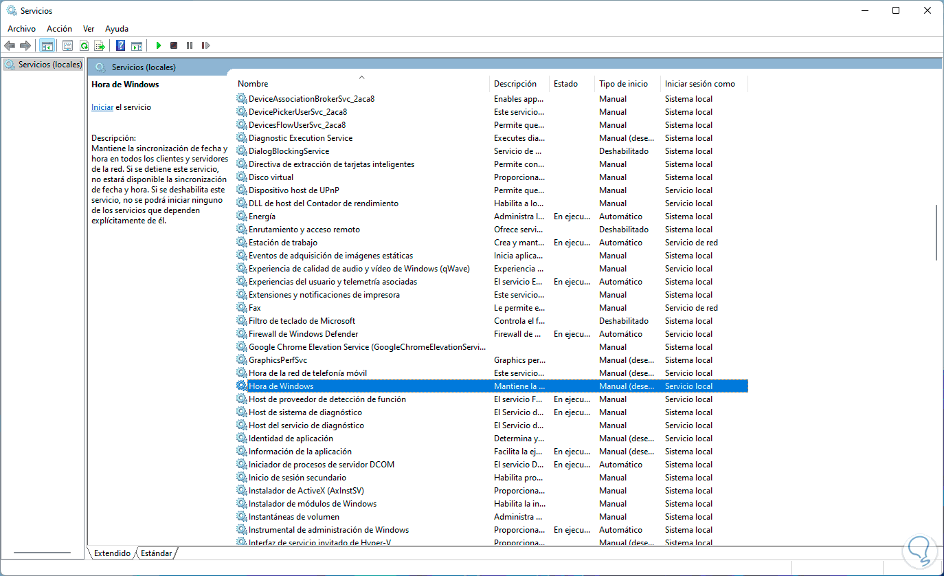 Como mencionamos la hora en Windows es un servicio de modo que este puede estar mal configurado, para validar esto abrimos Servicios: