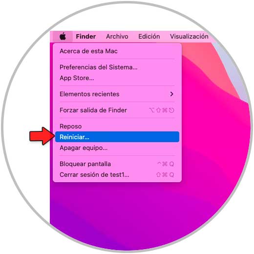 Para reiniciar macOS damos clic en el logo de Apple y seleccionamos "Reiniciar":