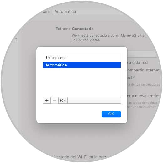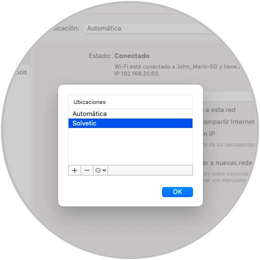 Por defecto macOS asigna una ubicación automática en base a la región pero esta puede llegar a fallar, allí es posible asignar una nueva ubicación y configurar sus parámetros de DHCP e IP.