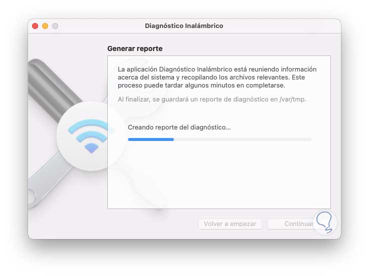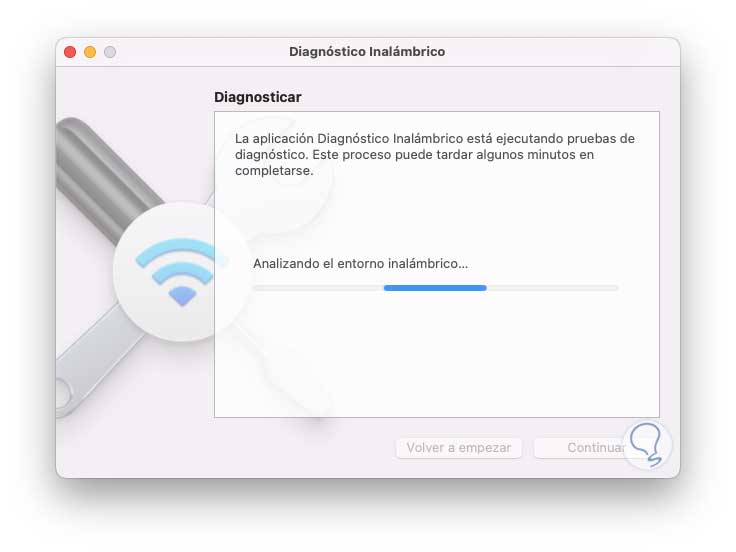 Damos clic en “Continuar” y esperamos que se analice el entorno Wi-Fi: