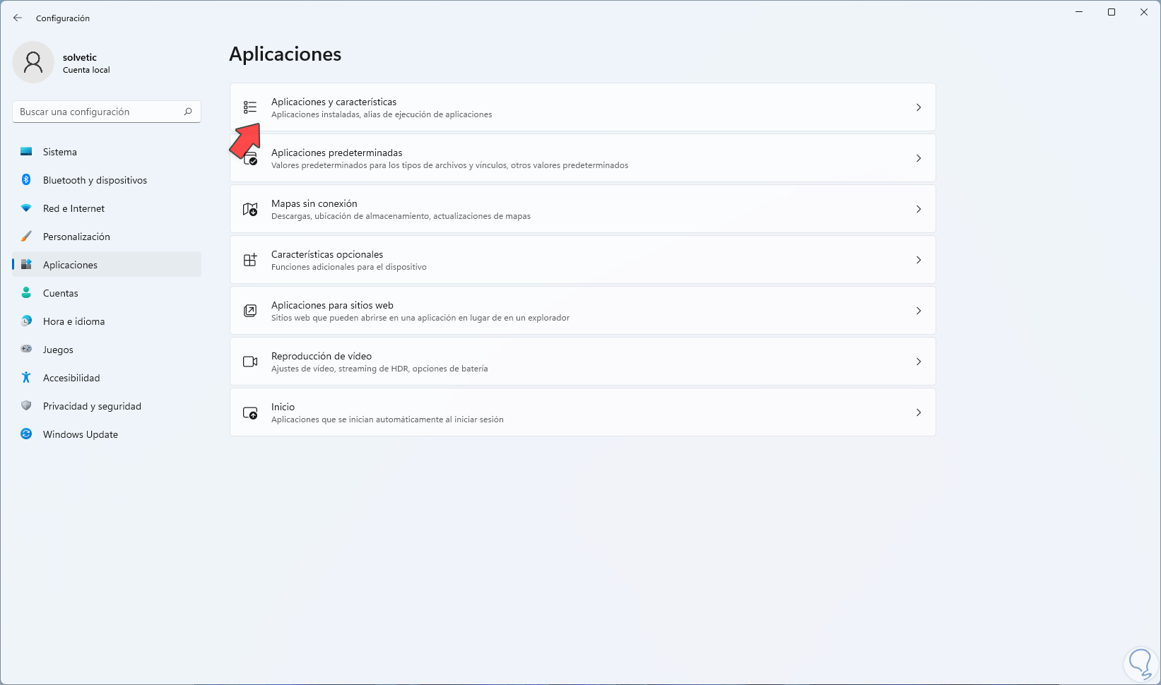 Para lograrlo vamos a "Inicio - Configuración - Aplicaciones - Aplicaciones y características":