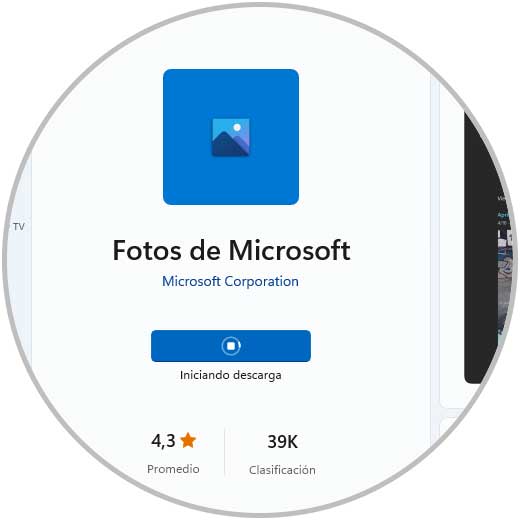 Damos clic en “Obtener” para descargar e instalar la aplicación Fotos: