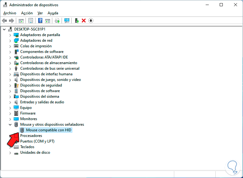 En "Mouse y otros dispositivos señaladores" damos doble clic sobre el controlador actual:
