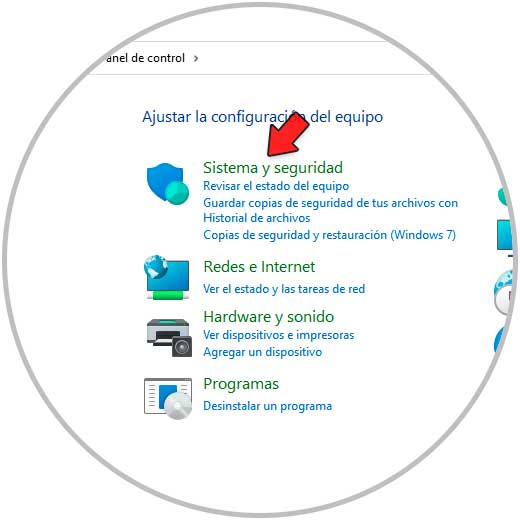 Para este caso abrimos el Panel de Control. Damos clic en “Sistema y seguridad” para ver lo siguiente: