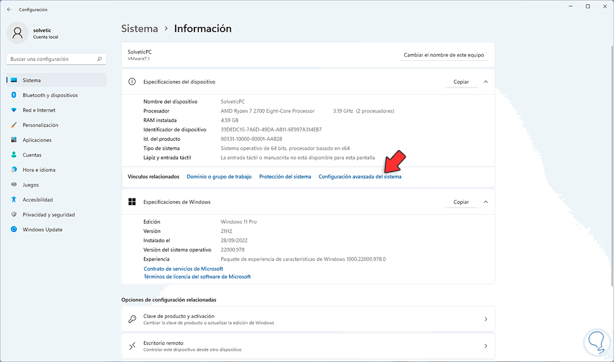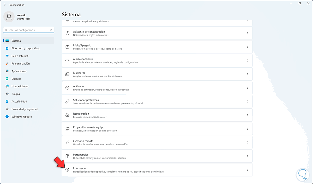 Para desactivar esto vamos a "Inicio - Configuración - Sistema - Información":