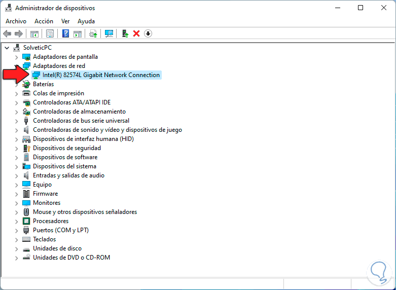 En "Adaptadores de red" damos doble clic sobre el controlador actual: