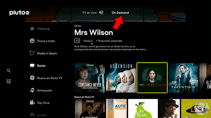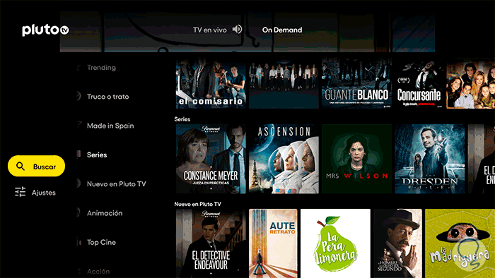 En caso de querer ver contenido existente de forma general y bajo demanda en Pluto TV, pulsa arriba en "On Demand"