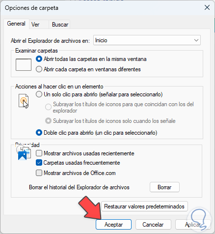Aplicamos los cambios dando clic en Aplicar y luego en Aceptar.