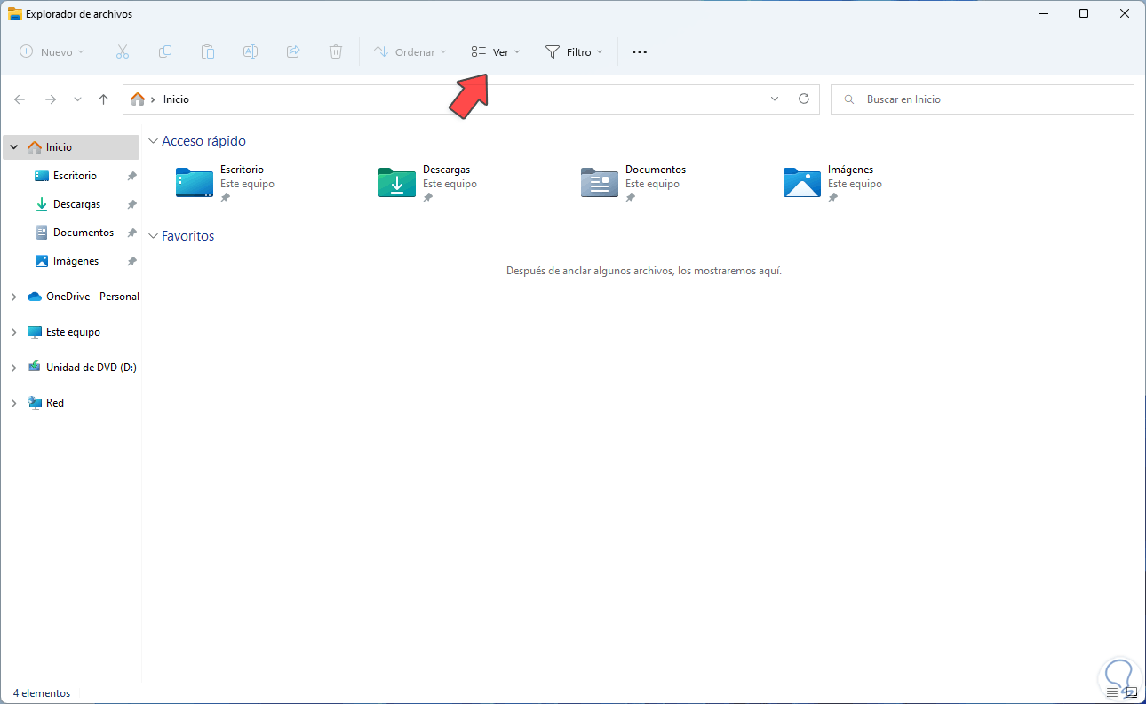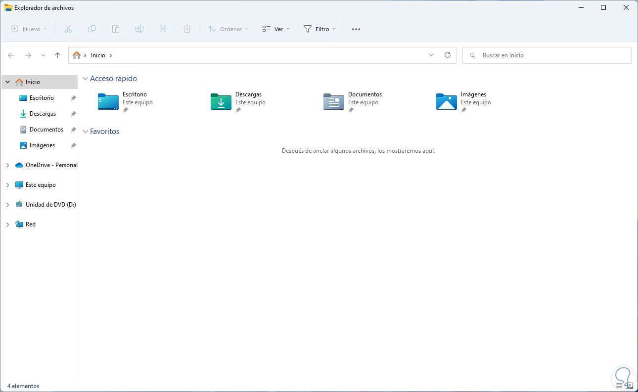 Aplicamos los cambios y así al acceder al Explorador de archivos no será visible ningún archivo de Office.com o generales como carpetas y demás archivos: