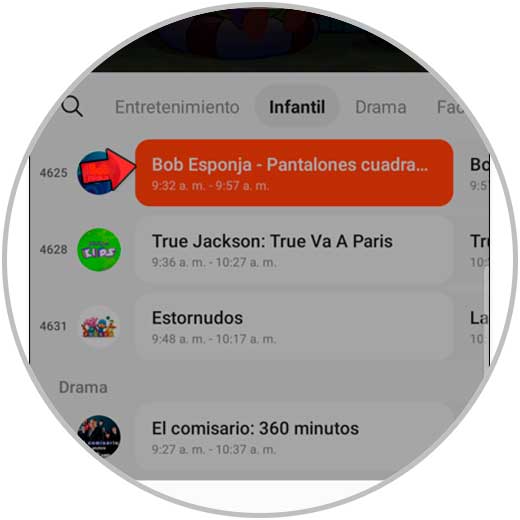 Para ver un contenido, pulsamos sobre éste y se reproducirá en el terminal móvil.