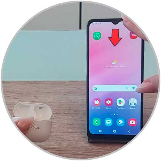 En ambas orejas escucharemos un pequeño pitido que indicará que los auriculares están correctamente colocados. Una vez suene, en nuestro terminal móvil deslizamos el menú superior desde la pantalla principal del mismo.