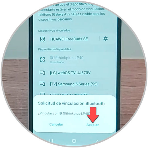 Pulsa en “Aceptar” para confirmar el proceso de vinculación de los auriculares con el terminal móvil.