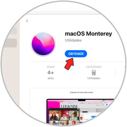 Desde el App Store descargamos el instalador de macOS Monterey: