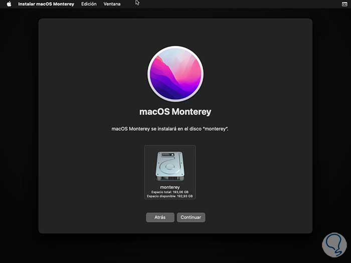 Allí se realizara la instalación, actualización, en el disco duro de macOS Monterey: