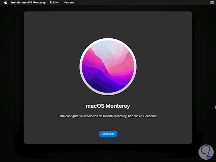 Como se trata de actualizar a la versión anterior seleccionamos la opción "Instalar macOS Monterey", damos clic en Continuar para ver lo siguiente:
