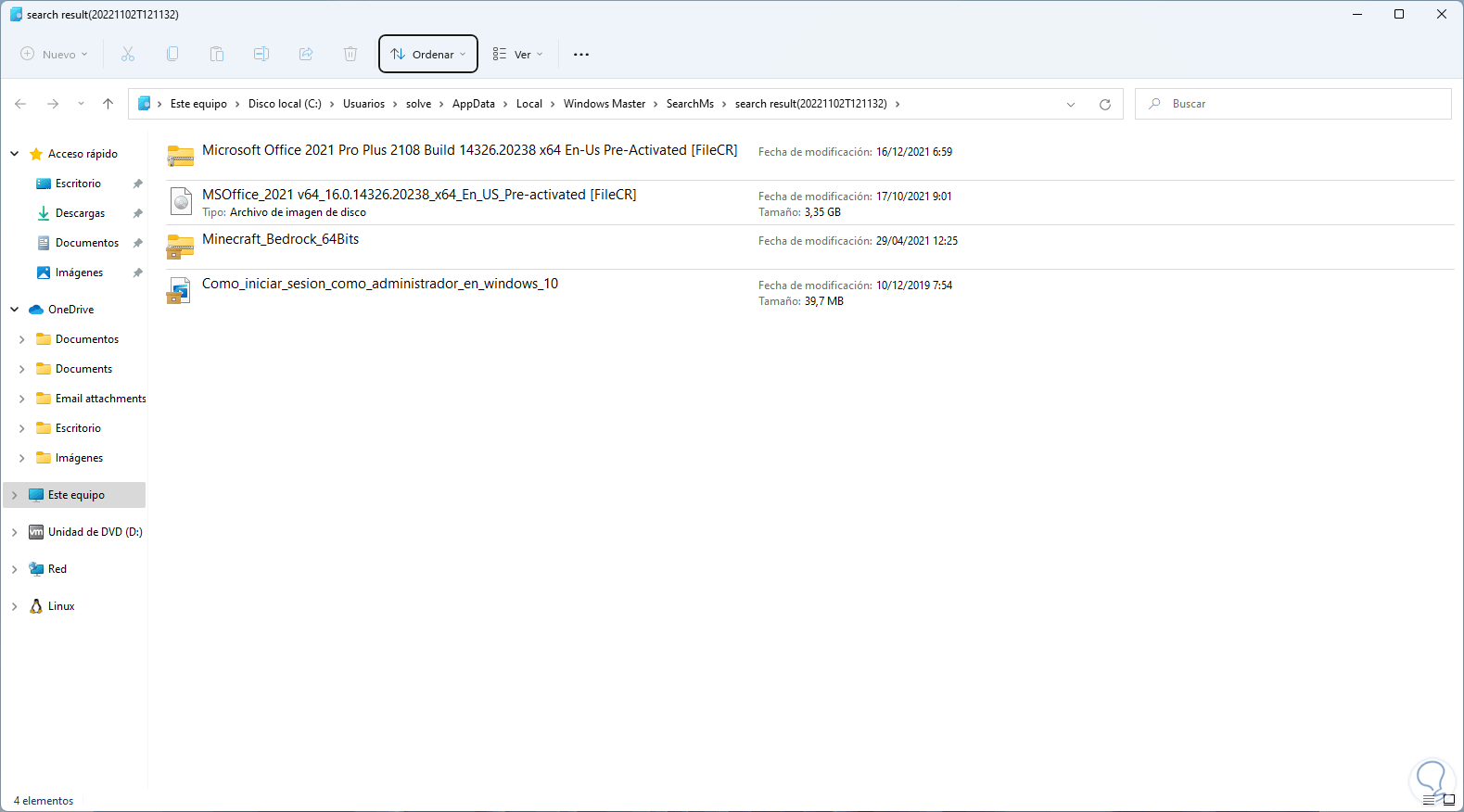 Damos clic en “View in File Explorer” para ver estos archivos específicamente allí:
