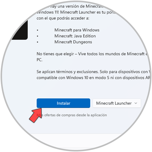 Después de esto abrimos la Tienda de Windows y allí buscamos Minecraft Launcher: