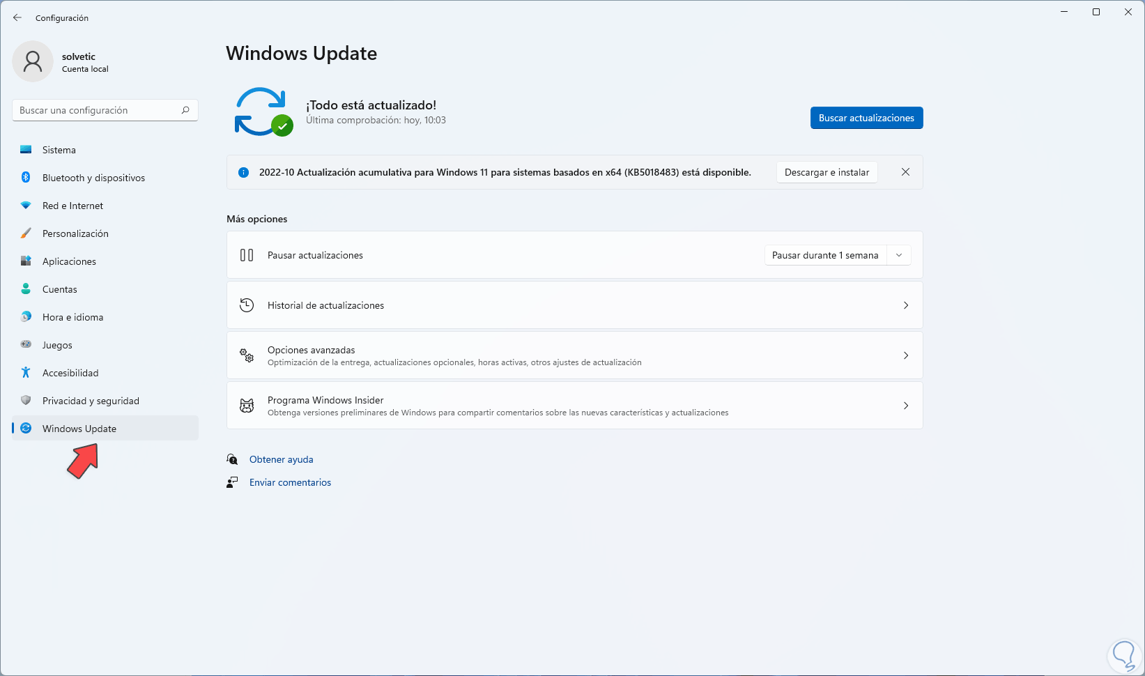 Damos clic en "Buscar actualizaciones" y esperamos para ver si existen actualizaciones: