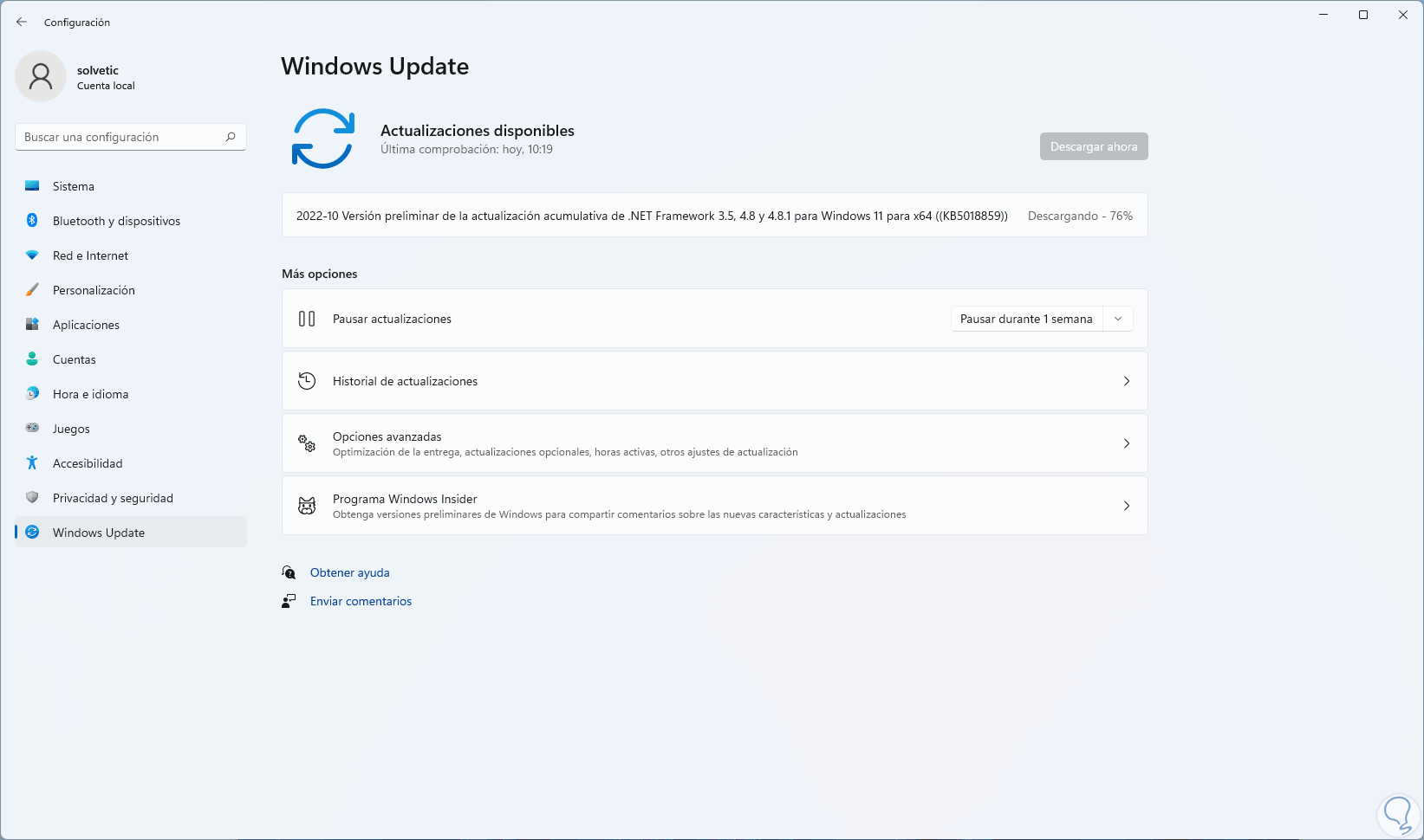 Si existen actualizaciones estas deben deberán ser descargadas e instaladas: