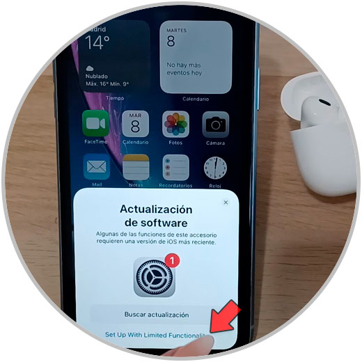Ahora, si tienes actualizado el iPhone a la última versión como si no, aparecerá una pantalla para vincularlo. Si no está actualizado a la última versión pulsa en "Configurar con funcionalidades limitadas".