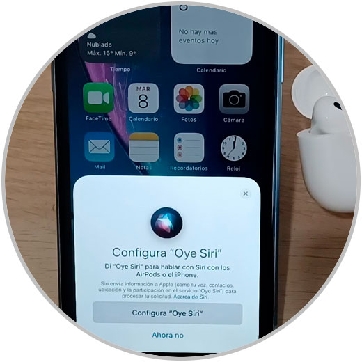 En este apartado podrás configurar "Oye Siri" en los AirPods. Si no quieres configurarlo en este momento, pulsa en “Ahora no”.