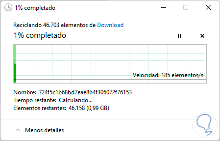 Damos clic en “Eliminar archivos” y esperamos que el proceso llegue a su fin: